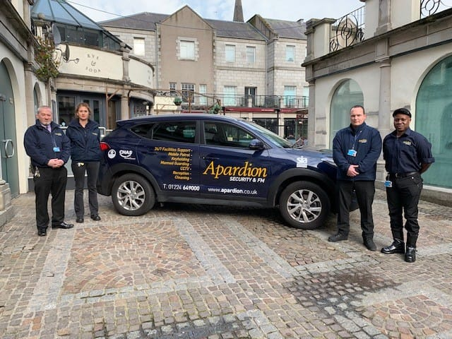 Based in Aberdeen and serving clients across Scotland, Apardion is a trusted provider of security, facilities management, and maintenance services. We specialise in manned guarding, fire alarm testing, fire door inspections, grounds care, gutter cleaning, and more. Contact us today to find out how we can support your business.