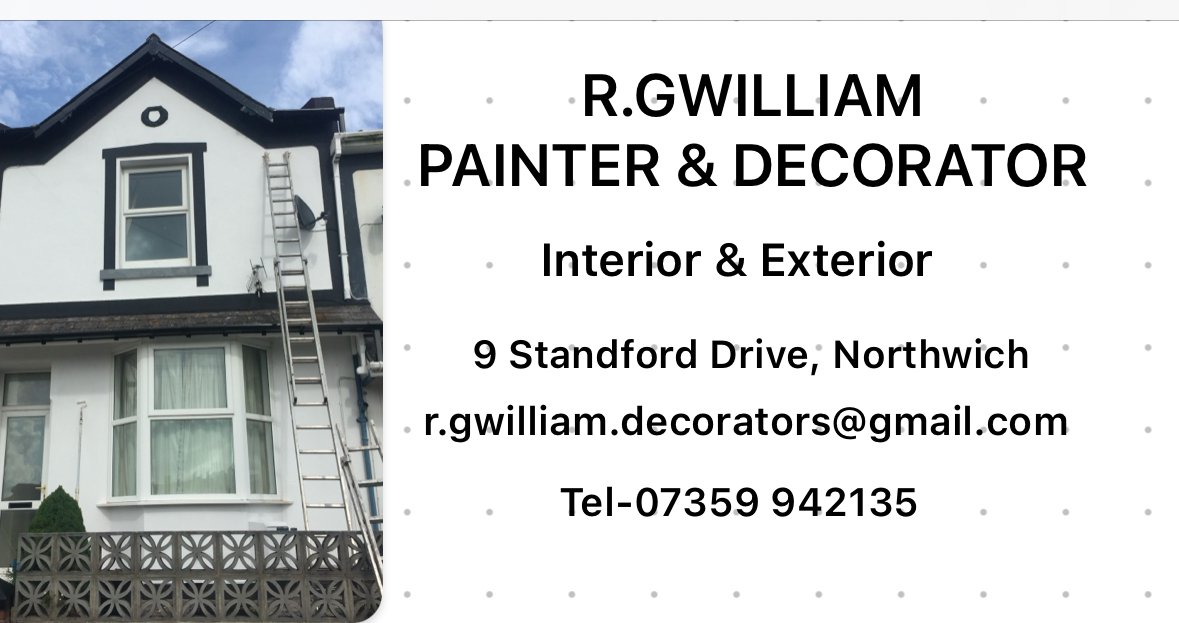 R.Gwilliam, Painter & Decorator, 9 Standford Drive, Northwich, United Kingdom